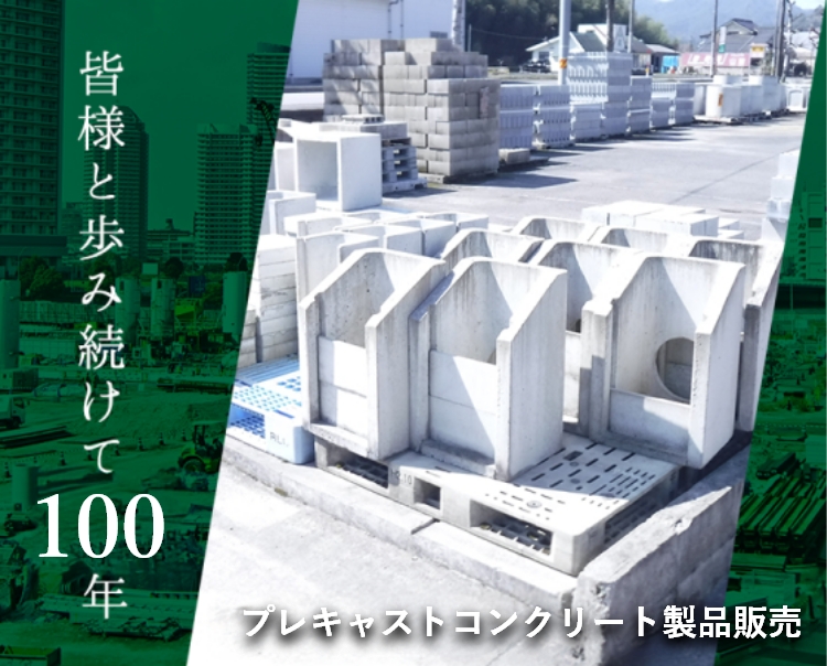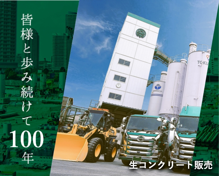100年以上の経験と実績を生かし、生コンクリートの製造・販売をはじめ、総合土木建築資材販売、プレキャストコンクリート販売、